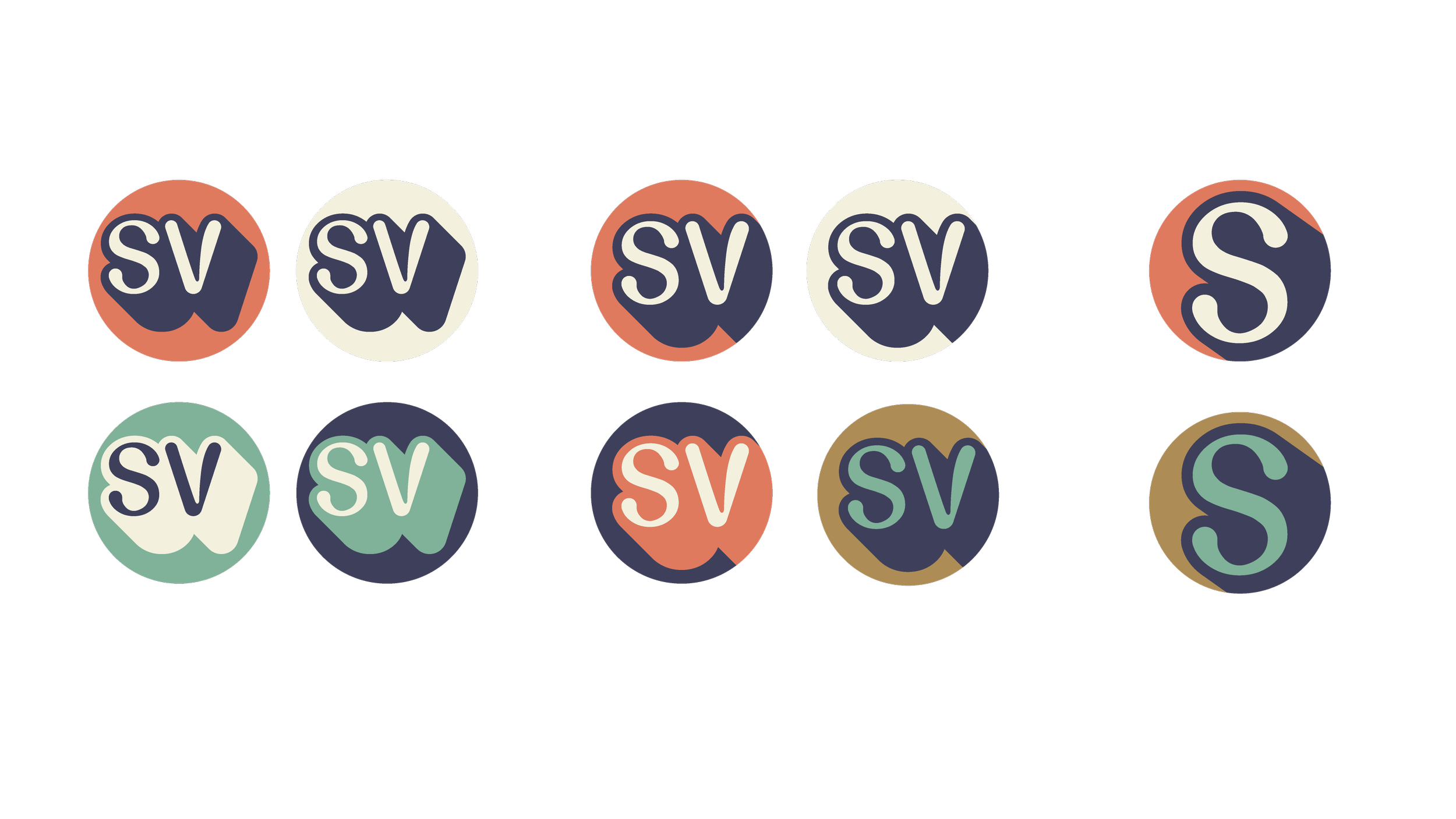 Initial concepts and brainstorming. Social media icons were taken into consideration early on. Various color palettes were also explored.