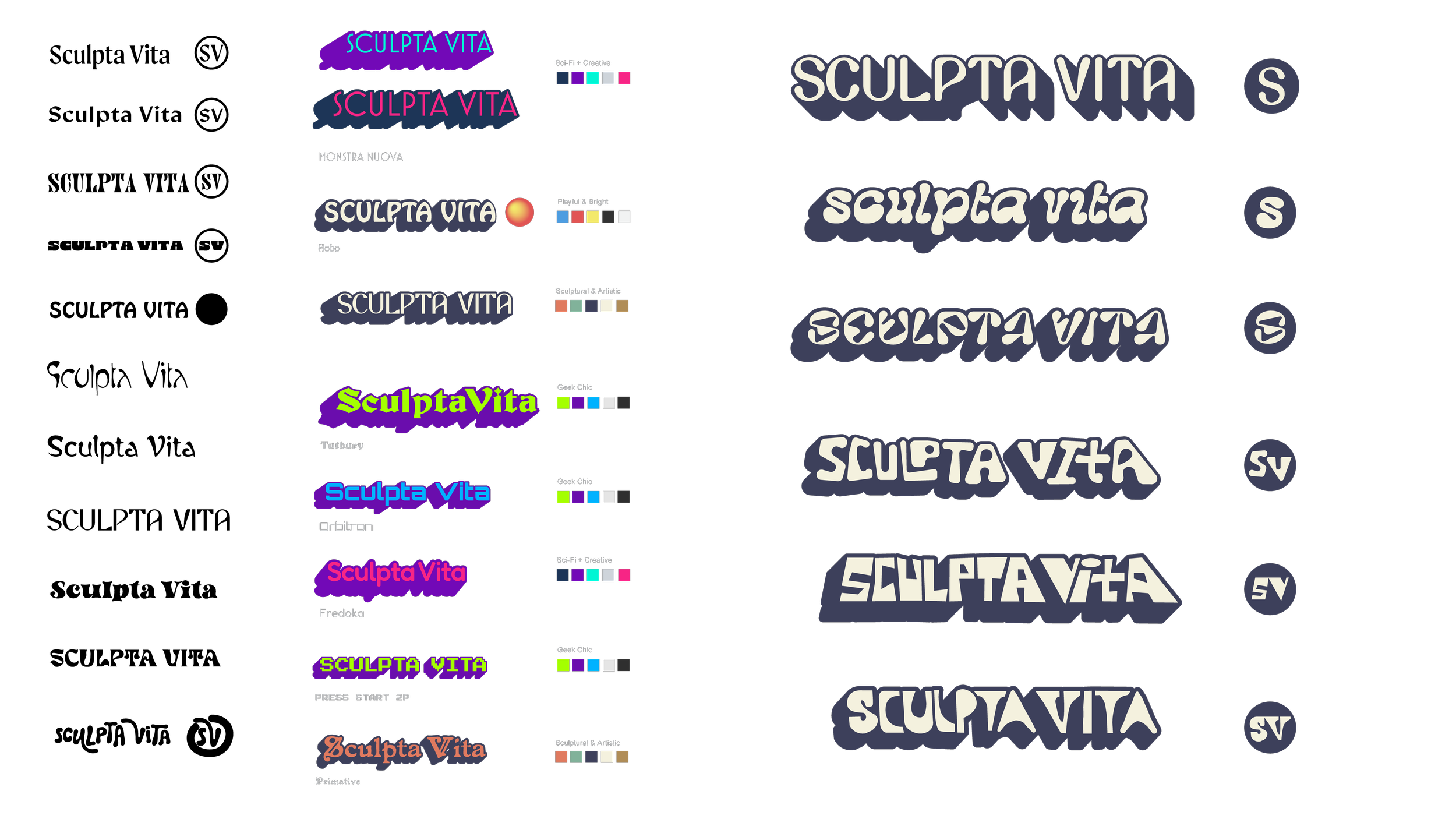 Sculpta Vita sells eclectic and pop inspired 3D printed sculptures. Latin for "sculpted life" Sculpta Vita is a metaphor for how life is shaped by experiences, choices, and the passage of time. It suggests that our lives are not predetermined but are actively molded by our actions. Together the owner/artist and I came up with a sophisticated, bold and playful branding with complimentary orange and blue colors with gold and teal accents.